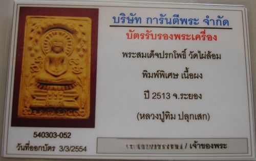 พระสมเด็จปรกโพธิ์วัดไผ่ล้อม พิมพ์พิเศษ หลวงปู่ทิม วัดละหารไร่ปลุกเสก เนื้อผง ปี 2513 พร้อมบัตรรับรอง