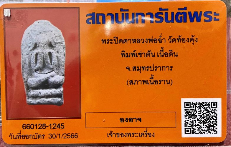 พระปิดตาหลวงพ่อฉ่ำ วัดท้องคุ้ง พิมพ์เข่าตัน เนื้อดิน จ.สมุทรปราการ