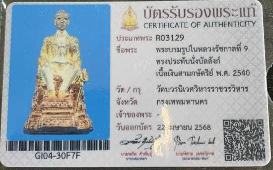 รูปหล่อลอยองค์ ในหลวงรัชกาลที่ 9 นั่งบัลลังก์ เนื้อเงิน สาม กษัตริย์ วัดบวรนิเวศวิหาร ปี 2540 กทม สวยๆๆๆพร้อมบัตรรับรองค่ะ