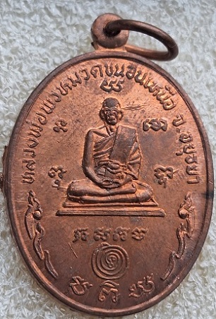 เหรียญหลวงพ่อพรหม วัดขนอนเหนือ รูปไข่หลังยันต์ ปี 2533 เนื้อทองแดง |