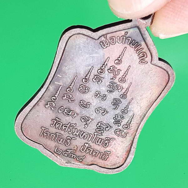 เหรียญระฆังรูปเหมือน หลวงพ่อแดง วัดศรีมหาโพธิ์ จ.ปัตตานี ปี 2538 เนื้อทองแดง เหรียญรุ่นนี้ สร้างปีเดียวกับรุ่น 5 แชะ (หรือบางท่านเรียกว่าเหรียญระเบิดด้าน) ด้านหลังตอกโค๊ดระฆัง ชัดเจน จัดเป็นพระดีน่าใช้อีกรุ่นของหลวงพ่อแดง เจ้าตำหรับห้าแชะ สุดยอดประสบการณ์ หายากน่าเก็บน่าใช้