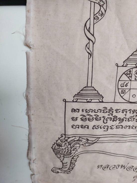 ***วัดใจ***ผ้ายันต์หลวงพ่อสุโขทัยไตรมิตร วัดไตรมิตร ผืนใหญ่ 68 X 84 CM.
