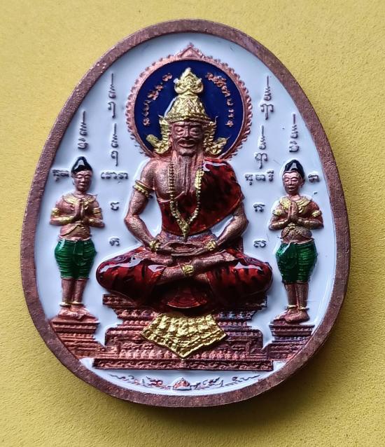 ชื่อพระเครื่อง พ่อปู่ฤาษีนารอท อ.เทียม วัดหนังปี๖๘ เหรียญหล่อทองแดงลงยาอังสะ พื้นขาว เลข๑๑๖