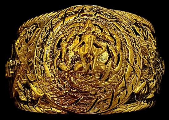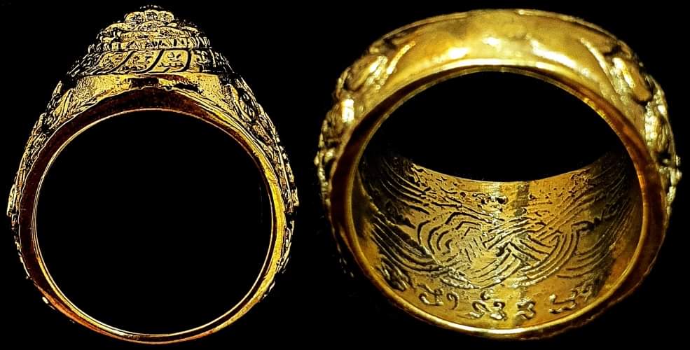 ท้องแหวน เป็นใช้เชือก 3 เส้น แทนพระรัตนตรัย (มะ อะ อุ) มาควั่นผูกกันเป็นเงื่อนพิรอด จาก 3 กลายเป็น 6 แทนพระฉัพพรรณรังสีของพระพุทธเจ้า (วิชานะฉัพพรรณรังสี) เหตุที่เอาเงื่อนพิรอดมาหลบไว้อยู่ใต้ท้องแหวน เพื่อเป็นเคล็ดวิชา “ #พิรอดหลบใน ” ล้อมรอบด้วยหัวใจพระคาถา พระเจ้า 10 ชาติ “ เต ชะ สุ เน มะ ภู จะ นา วิ เว ” และ “ นะอุณาโลม ” กับ “ นะคุ้มเมือง ”