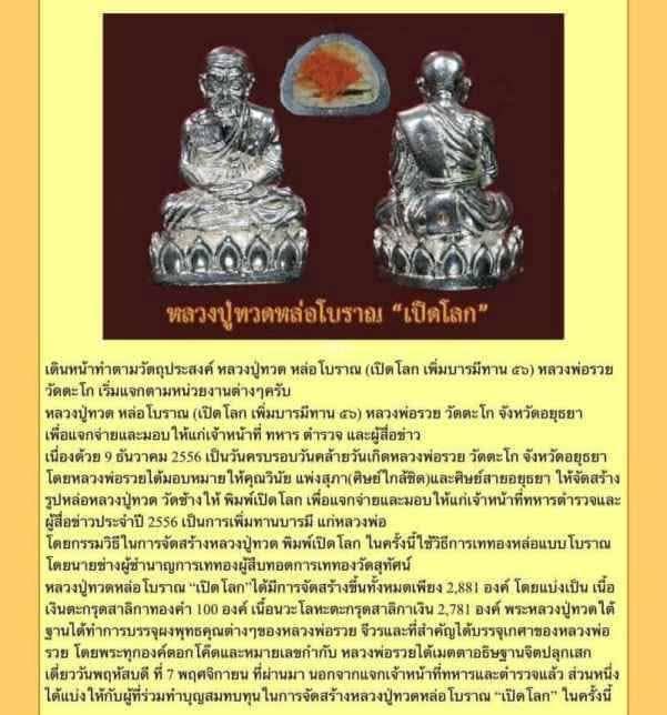 หลวงพ่อรวย วัดตะโก จ.อยุธยา หลวงปู่ทวด เปิดโลก ปี 2556 เนื้อเงิน ฝังตะกรุดทองทองคำ หายากมากๆ
