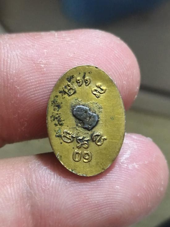เหรียญรูปไข่เล็ก(หัวแหวน)พระครูเปิ้น วัดบ้านเก่า จ.ชลบุรี.พศ.2509 ทองแดงกะไหล่ทอง