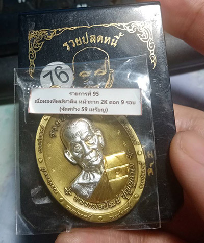 129..........เหรียญ รวยปลดหนี้ หลวงพ่อพัฒน์ ปี 2566 เนื้อทองเหลืองชาติน หน้ากาก 2 k ตอก 9 รอบ สร้างเพียง 59 เหรียญ สวยเดิมกล่องเดิม |