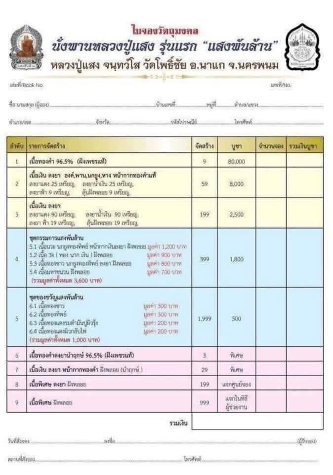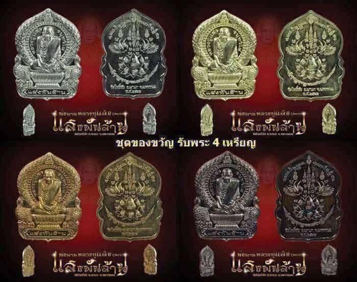 เหรียญนั่งพานรุ่นแรก ลป.แสง วัดโพธิ์ชัย นครพนม รุ่นแสงพันล้าน ชุดของขวัญ 4 เหรียญ(ตามภาพ) ราคาจองชุดละ 500 บาท วันนี้วัดใจเคาะแรกแดงครับ/ชุดที่10 |