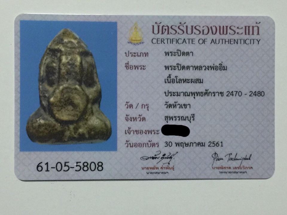 พระปิดตา หลวงพ่ออิ่ม วัดหัวเขา สุพรรณบุรี ปี 2470-2480 .... อ้างอิงข้อมูล บัตรสมาคม