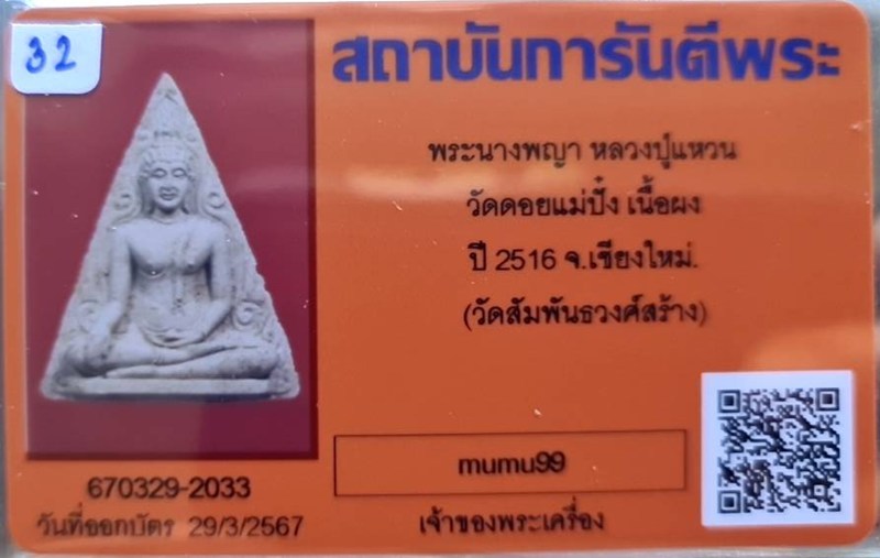 @## พระนางพญา.. ลป.แหวน วัดดอยแม่ปั๋ง จ.เชียงใหม่ (พิธีปลุกเสกใหญ่ใหญ่ วัดสัมพันธวงศ์ กทม.จัดสร้าง ) ปี2516 เนื้อผง พร้อมบัตรรับรอง สภาพสวยมาก รับประกันความแท้ตลอดชีพ พิธีปลุกเสกในวาระแรก ปี 2516 -วัต |