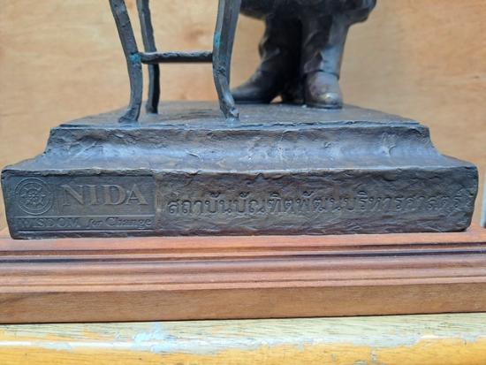 พระรูปเหมือนในหลวง ร.9 สถาบันบัณฑิตพัฒนบริหารศาสตร์(นิด้า) พ.ศ.2553 พิธีวัดพระแก้ว เนื้อโลหะบรอนซ์นอก ขนาดฐานล่างกว้าง27ซม.สูงรวม57ซม.