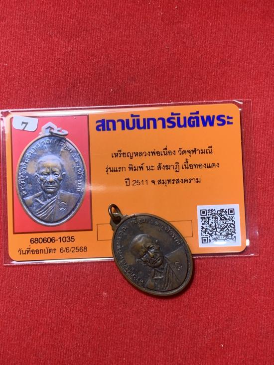 เหรียญหลวงพ่อเนื่อง วัดจุฬามณี รุ่นแรก พิมพ์ นะ สังฆาฏิ เนื้อทองแดง ปี2511 มีรอยจาร พร้อมบัตรรับรอง