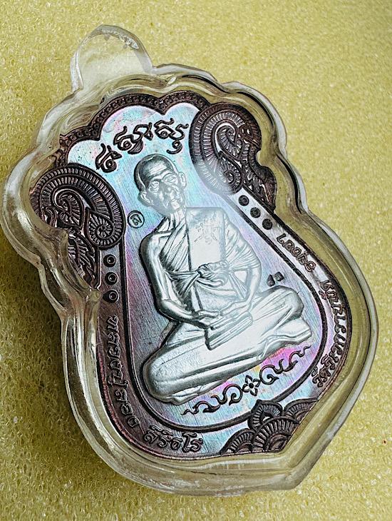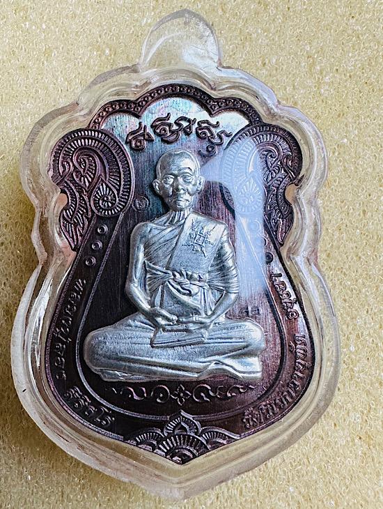เหรียญไตรมาส 65 หลวงปู่ลอง วัดวิเวกวายุพัด จ.อยุธยา เนื้อสัตตะหน้ากากเงิน หมายเลข 83 สร้าง99เหรียญ