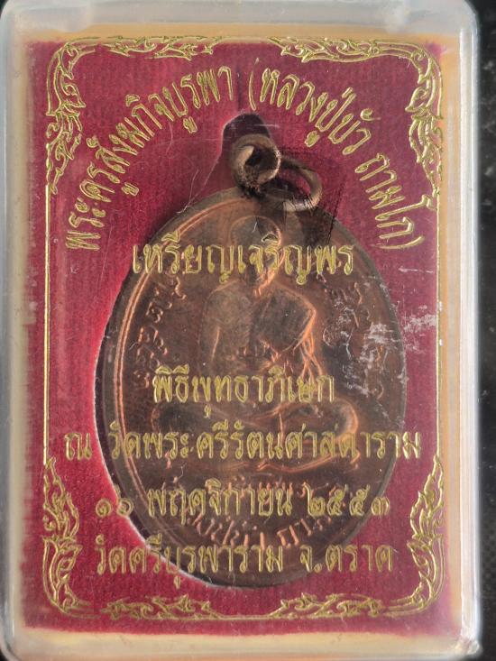 วัดใจ เหรียญเจริญพร เนื้อทองแดง หลวงปู่บัวถามโก วัดศรีบุรพาราม จ.ตราด 16 พฤศจิกายน 2553 พร้อมกล่อง