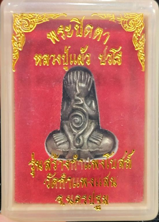 หลวงปู่แผ้ว ปวโร วัดรางหมัน นครปฐม พระปิดตามหาอุตต์ เนื้อสัมฤทธิ์เงิน รุ่นแรกปี 2547 ปีเดียวกับใบขี้เหล็กรุ่นแรก ผิวสวยมีเม็ดแร่หายาก มีกล่องเดิม
