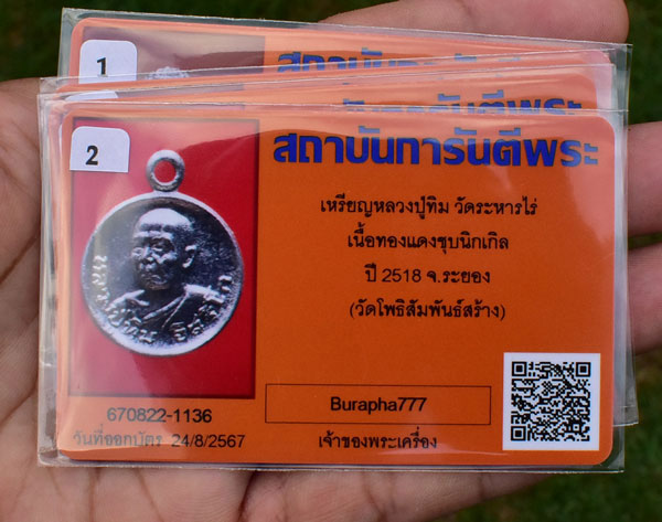 เหรียญหลวงปู่ทิม วัดระหารไร่ เนื้อทองแดงชุบนิเกิ้ล ปี 2518 จ.ระยอง (วัดโพธิสัมพันธ์สร้าง) เลี่ยมทองสั่งทำ