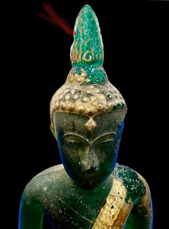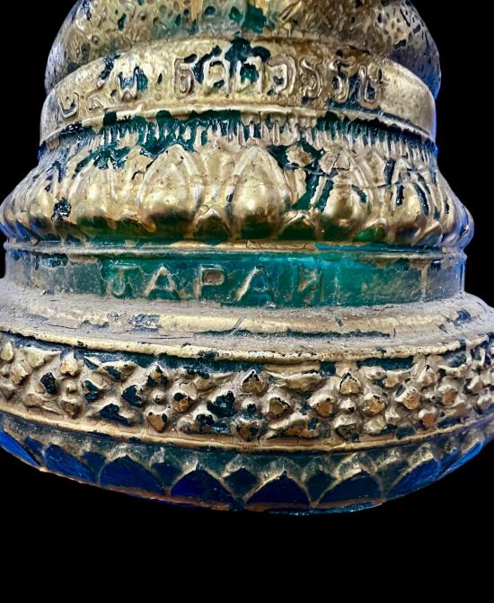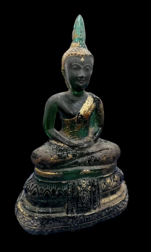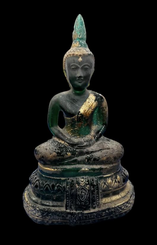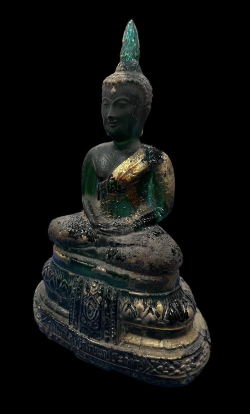 พระแก้วพิธี 25 พุทธศตวรรษ บล็อค JAPAN เนื้อแก้วสีเขียวน้ำทะเลกระไหล่ทองเก่า สำนักพุทธรัตนประทีป(สำนักนิยม) ก้นปั้มลายเซ็น กรรมการผู้จัดการ สภาพสวยครับ
