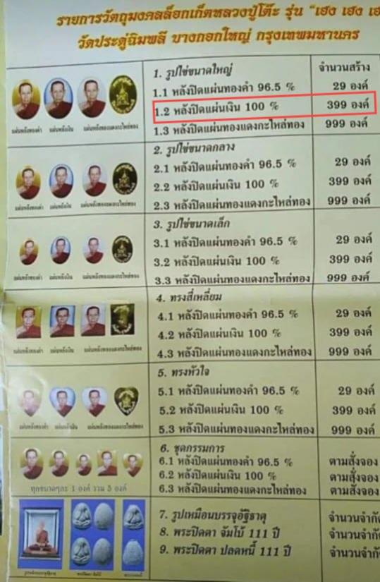 ล็อกเกตหลวงปู่โต๊ะ รุ่นเฮงเฮงเฮง พิมพ์ใหญ่หลังเงิน