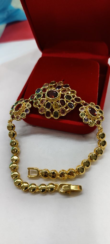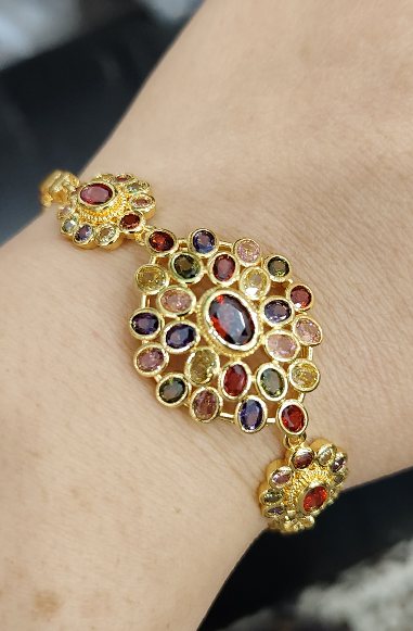 เทขาดทุน+ กำไลแขนพลอยนพเก้ายาว 7.5นิ้ว งานจิวเวลลี่ชุบทองแท้ |