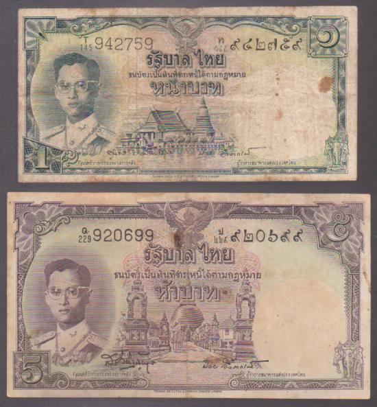 ## ธนบัตร 2 ฉบับ ## 5 บาท โทมัส + 1 บาท โทมัส ## 9-99 ##