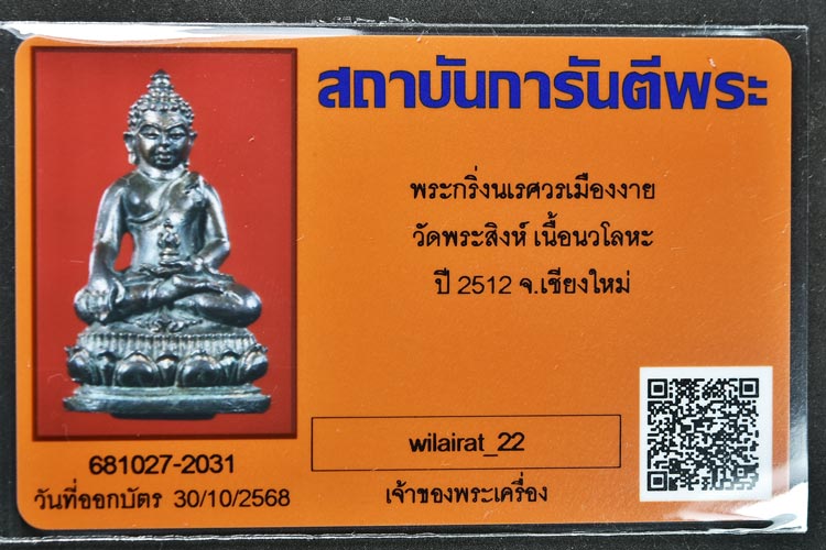พระกริ่งนเรศวรเมืองงาย วัดพระสิงห์ เนื้อนวะ ปี12 "กริ่งดัง"พร้อมบัตรรับรอง