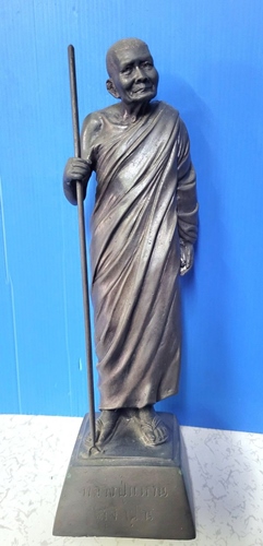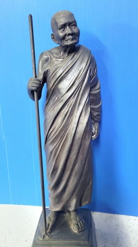 พระบูชารูปหล่อเหมือน หลวงปู่แหวน สุจิณโณ วัดดอยแม่ปั๋ง จ.เชียงใหม่ พิมพ์ยืนถือไม้เท้า