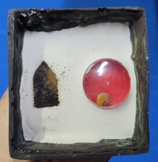 ใต้ฐานองค์พระ บรรจุ วัตถุมงคล มีพระผง,ลูกอม และจีวร ของหลวงปู่แหวน และของวัดสัมพันธวงศ์