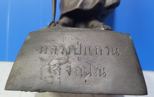 พระบูชาหลวงปู่แหวน สุจิณโณ พิมพ์ยืน ถือไม้เท้า ออกวัดสัมพันธวงศ์ กรุงเทพฯ ปี2547 สูง 11.5นิ้ว ฐานกว้าง 3.5นิ้ว กรรมการ หายากมาก ใต้ฐานมีวัตถุมงคลมีจีวร,ลูกอมและพระผง ของวัดสัมพันธวงศ์ และของหลวงปู่แหวน บรรจุอยู่