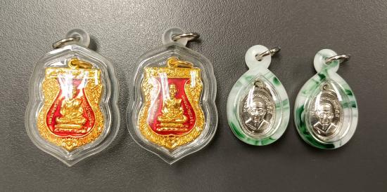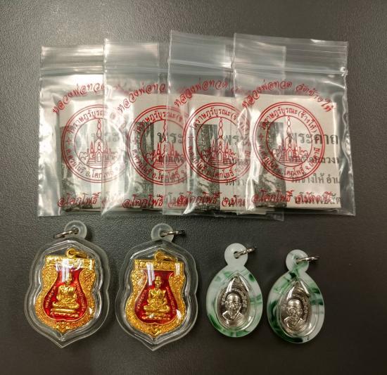 350...(รับพระ 4 เหรียญ) รวมส่งด่วน EMS. เหรียญเสมาเล็ก (ลงยาแดง+กะไหล่ทอง เคลือบเรซิน) ลป.ทวด-อ.ทิม ออกวัดช้างให้ พระประจำปี 2568 ตอกโค้ด ๖๘ และเหรียญเม็ดแตง ปี 2568 พร้อมซองเดิมและใบคาถามจากวัด เลี่