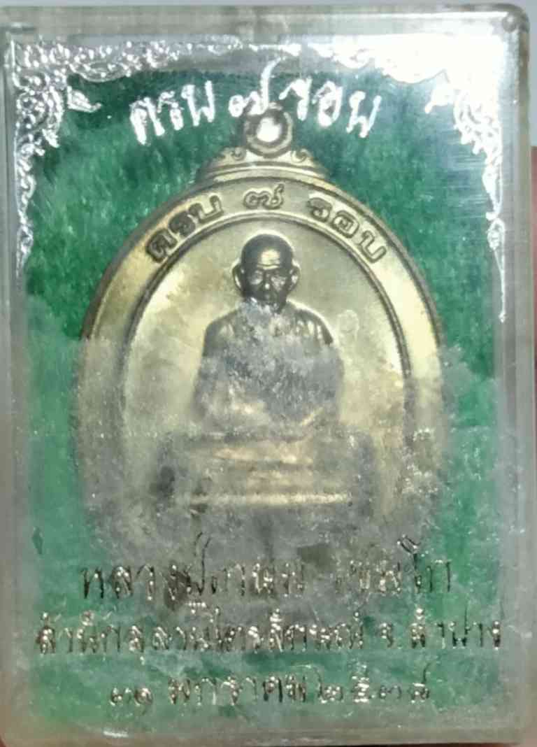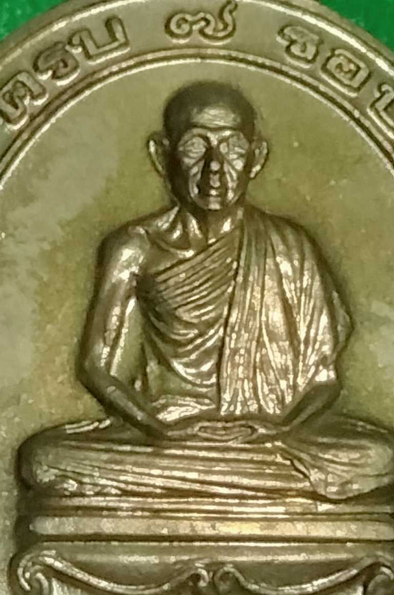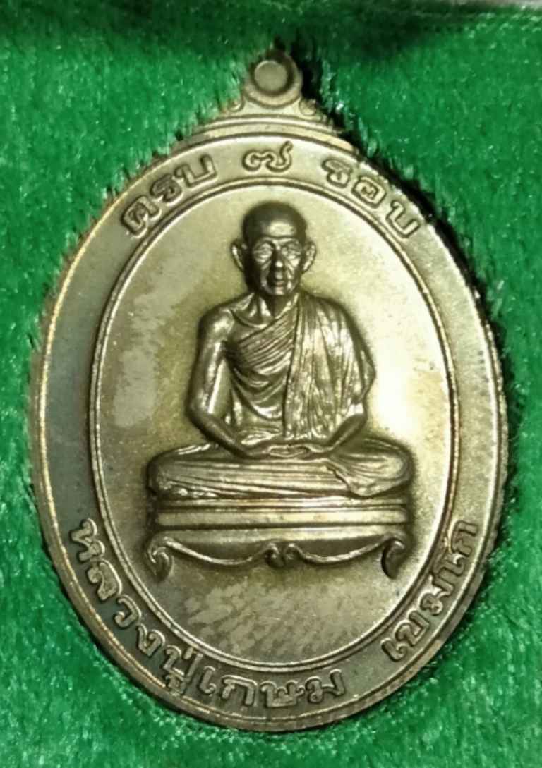 เหรียญ 7 รอบ หลวงพ่อเกษม เขมโก ปี 38 เนื้อฝาบาตร (ฝากล่องมีคราบกาวแห้งติดอยู่ครับ)