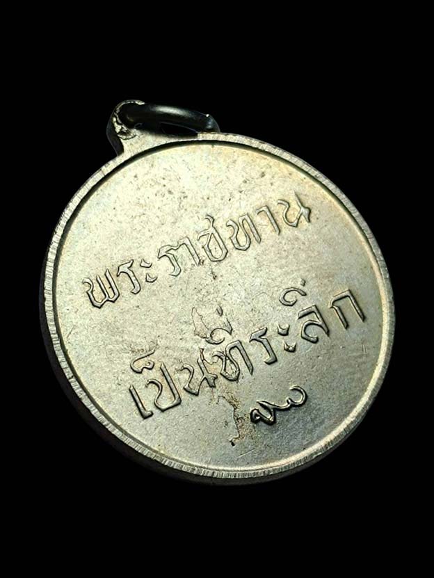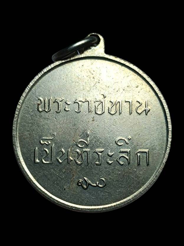 เหรียญในหลวงรัชการที่ 9 (ร.9) ด้านหลังอักษรคำว่า พระราชทาน เป็นที่ระลึก และอักษรย่อ สว. เนื้ออัลปาก้า ปี พ.ศ.2493 สภาพสวยเดิม หายาก