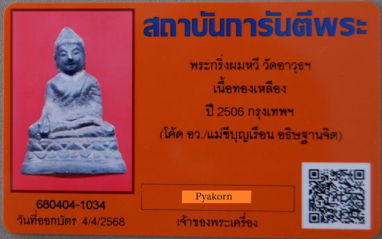 เคาะเดียวแดง กับพระกริ่งผมหวี แม่ชีบุญเรือน วัดอาวุธ กทม. เนื้อทองเหลืองรมดำ ปี 2506 สภาพสวยมาก รมดำเต็มองค์ และโค๊ด.อว.คมชัดครับ มาพร้อมบัตรรับรองเก็บได้อย่างสบายใจ รับประกันพระแท้ๆ แบบสากล และตามกฏครับ