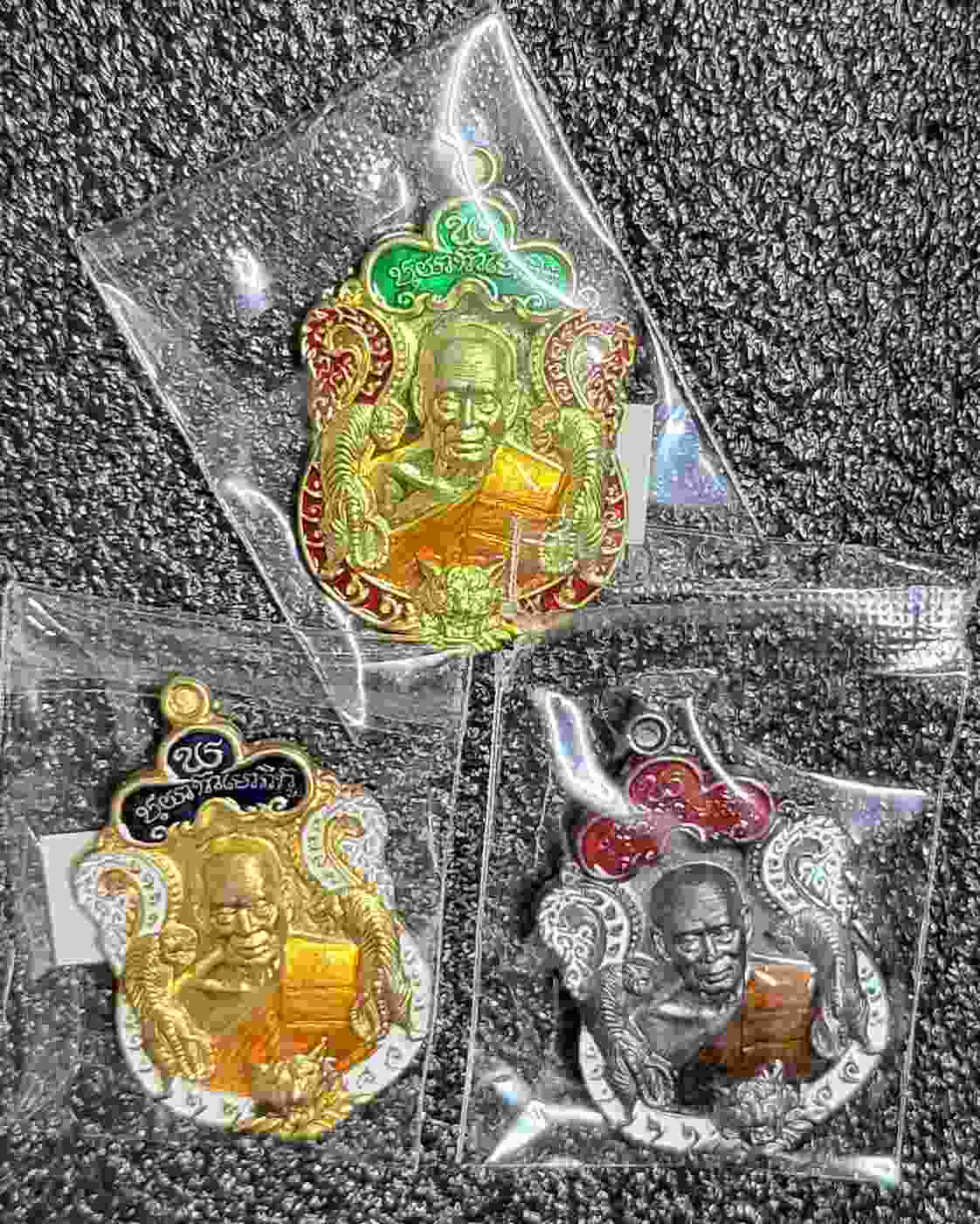 เคาะเดียวแดง เหรียญหลวงพ่อพัฒน์ รุ่นพยัคฆ์แสนล้าน โซนลงยาสามสี รวม 3 เหรียญ |