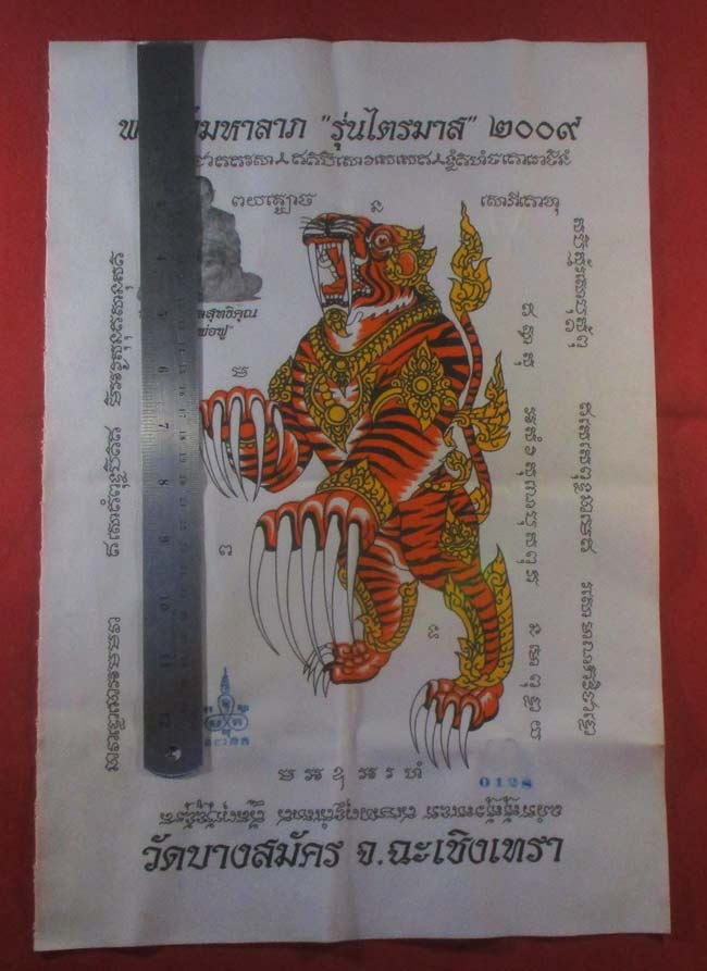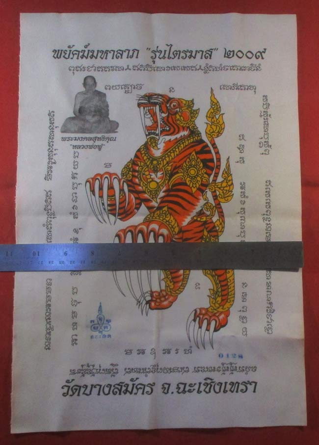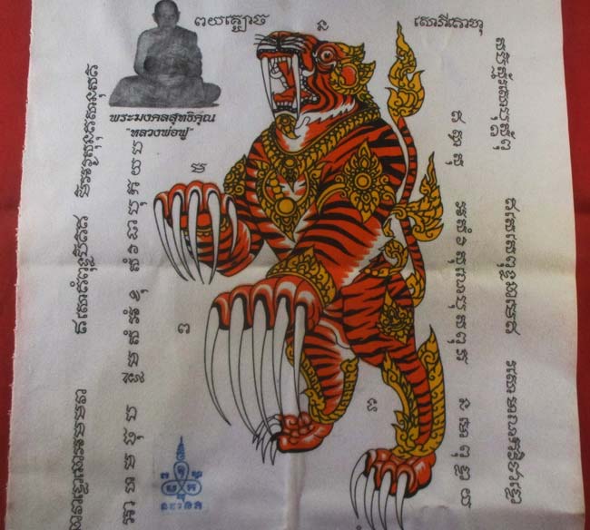 ผ้ายันต์ พยัคฆ์มหาลาภ "รุ่นไตรมาส" ๒๐๐๙ หลวงพ่อฟู วัดบางสมัคร จ.ฉะเชิงเทรา ครับ (พระบ้าน ครับ)
