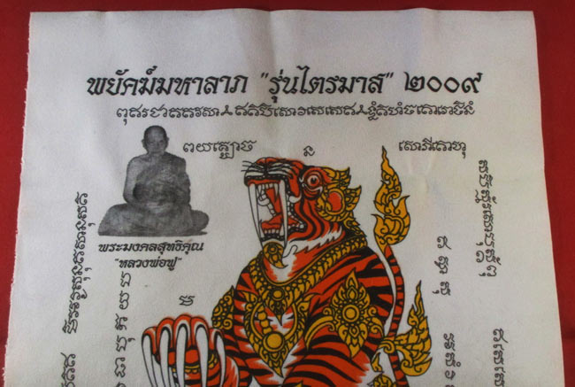 ชื่อพระเครื่อง ผ้ายันต์ พยัคฆ์มหาลาภ "รุ่นไตรมาส" ๒๐๐๙ หลวงพ่อฟู วัดบางสมัคร จ.ฉะเชิงเทรา ครับ (พระบ้าน ครับ)
