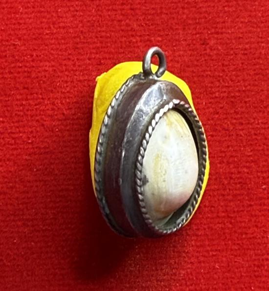 เบี้ยแก้เก่า เลี่ยมเงิน ตามรูป เขย่ามีเสียงดัง มีการใช้เก่า ขนาดเล็กปลายนิ้วชี้ ค่ะ |