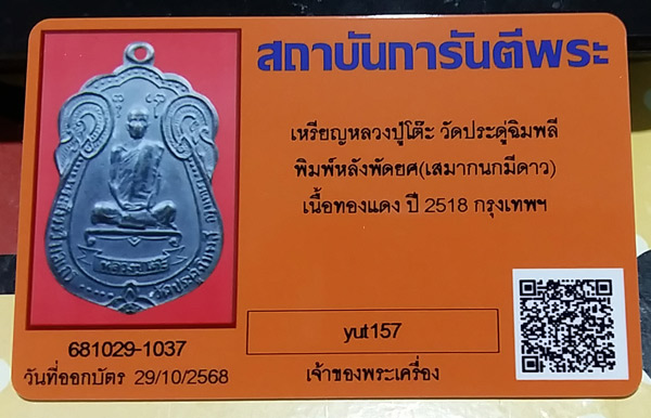 เหรียญหลวงปู่โต๊ะ วัดประดู่ฉิมพลี พิมพ์หลังพัดยศ(เสมากนกมีดาว) เนื้อทองแดง ปี 2518 สถาพสวยเดิม+บัตรรับรองพระแท้ครับ