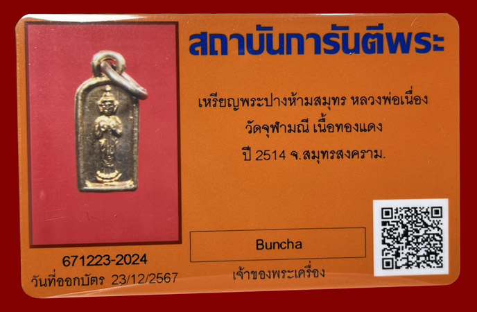 !!!...วัดใจ...เหรียญพระประจำวัน พิมพ์พระปางห้ามสมุทร(วันจันทร์) ปี2514 หลวงพ่อเนื่อง วัดจุฬามณีฯจ.สมุทรสงคราม เนื้อทองแดงผิวไฟ หายาก สภาพสวย พร้อมบัตรรับรองครับ...!!!