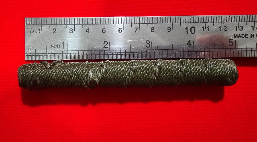 ตะกรุดเนื้อสามกษัตริย์ หลวงพ่อทบ วัดพระพุทธบาทชนแดน เนื้อทองเหลือง+ทองแดง+ตะกั่ว ยาวเกือบ 5 นิ้ว |