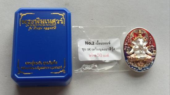 วัดใจเคาะเดียวแดงจ้า เหรียญหล่อพุทธศิลป์พระพิฆเนศ รุ่นห้ามจนตลอดชาติ เนื้อบรอนซ์ชุบ3K เหรียญลงยาสีรุ้ง เคาะเดียวแดงจ้า |