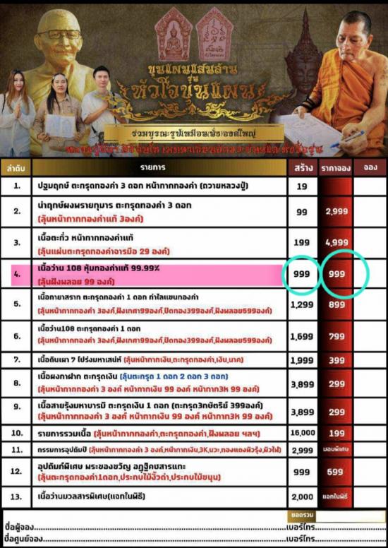 รายการจองที่ 4...เนื้อว่าน 108 หุ้มทองคำแท้ 99.99%