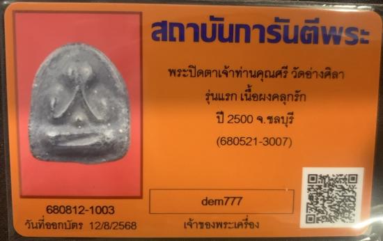 พระปิดตารุ่นแรก เจ้าคุณศรี วัดอ่างศิลา เนื้อผงคลุกรัก ปี 2500 พิมพ์มีขอบ หลังยันต์ตั้ง สวยเดิม หายาก พร้อมบัตรรับรองครับ