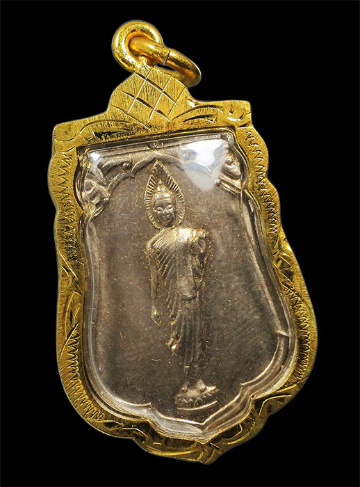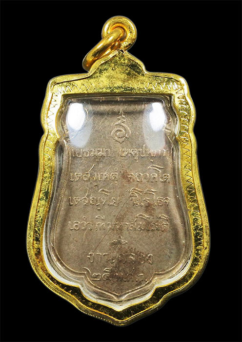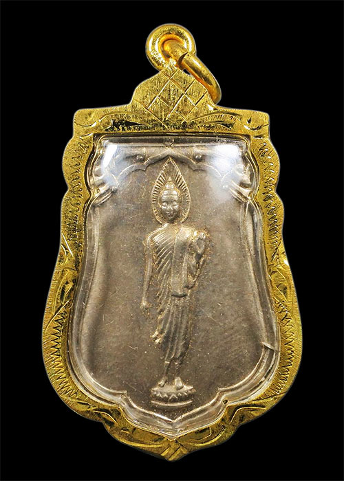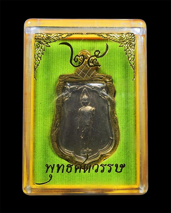 เหรียญเสมา พระพุทธ 25ศตวรรษ ปี2500 เนื้ออัลปาก้า เลี่ยมไมครอนทอง กล่องเดิม (2)