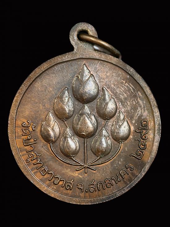 หรียญหลวงปู่มั่น หลังดอกบัว 8 ดอก หลัง พ.ศ.2492 ย้อนยุคพิธีใหญ่เนื้อทองแดง |