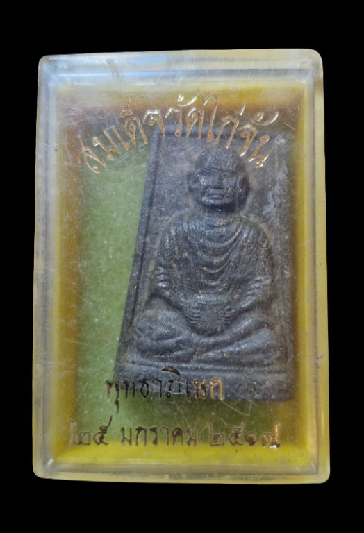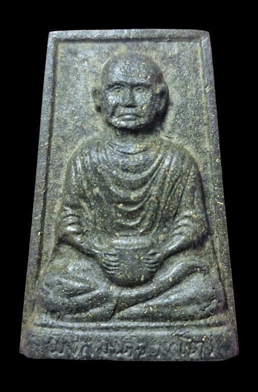 พระผงรูปเหมือนสมเด็จโต อุ้มบาตร เนื้อผงใบลานโรยตะไบทอง ผสมผงเก่าบางขุนพรหม วัดไก่จ้น จ.อยุธยา ปี 2517 หลวงปู่ลำภู สร้าง พร้อมกล่อง |
