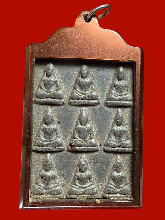 พระพิมพ์นางเก้า เนื้อตะกรุดโทน หลวงพ่อแทนวัดธรรมเสน ราชบุรี เลี่ยมเดิมเก่าๆ