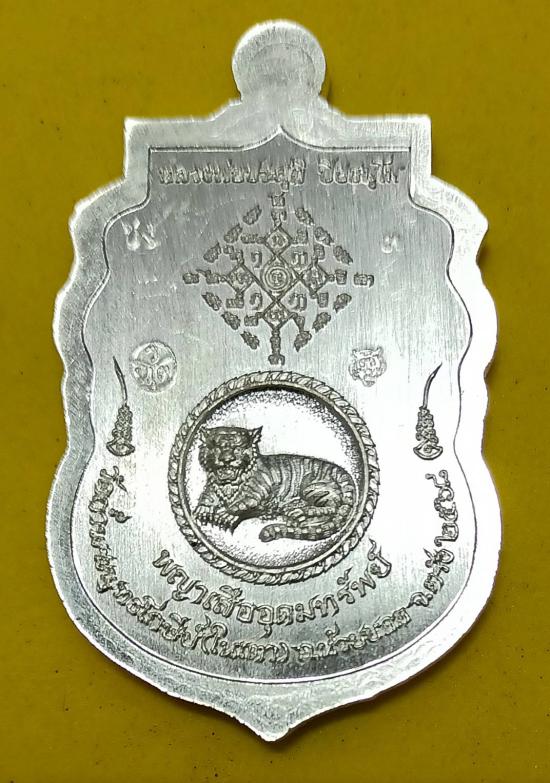 อ.ประสูตร วัดในเตา เหรียญเสมาชุบเงินลงยา รุ่นพญาเสืออุดมทรัพย์ ปี๖๘ โค๊ต-เลข๓ |