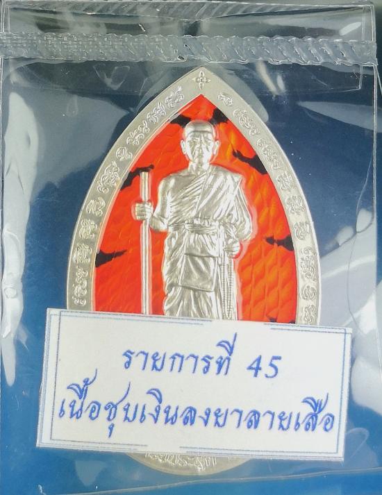 250-เคาะเดียว เหรียญรุ่น รวยยั่งยืน อาจารย์ประสูติ วัดในเตา จ.ตรัง รายการที่45เนื้อชุบเงินลงยาลายเสือ เลข๑๒๖