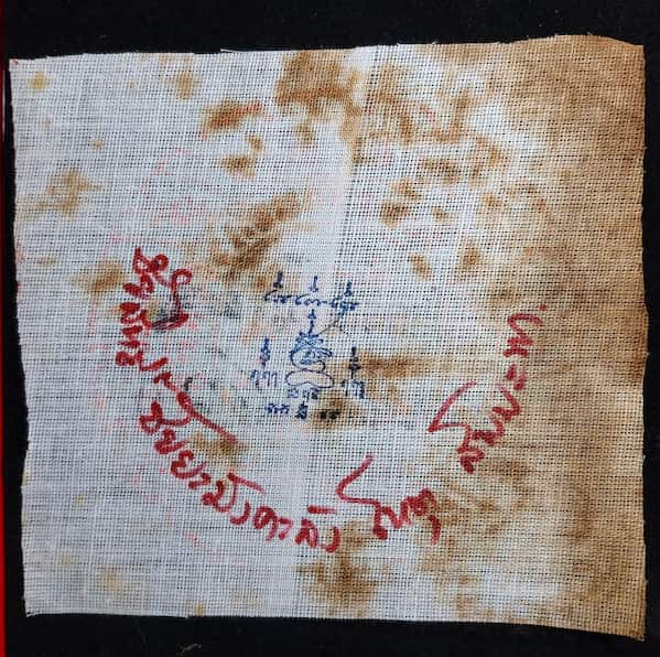 ชื่อพระเครื่อง ผ้ายันต์ธงผ้ากาสาวพัสตร์ ธงพระรัตนจักรชัยสิทธิ์ หลวงปู่ชื้น วัดญาณเสน กำจัดภัยยุคกาลี ป้องกันภัย 10 ประการ พุทธคุณครอบจักรวาล ผืนนี้เป็นผ้าขาวดิบ ขนาด 12x11 ซ.ม.