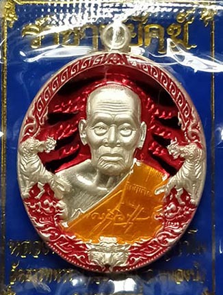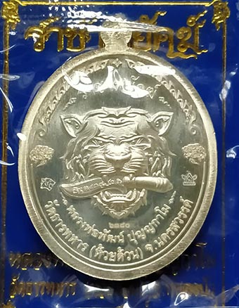 เหรียญหลวงพ่อพัฒน์ วัดห้วยด้วน "รุ่นราชาพยัคฆ์ปี" 2563 เนื้อเงินลายเสือ ลงยาแดง ลงยาจีวร เลขสวย |